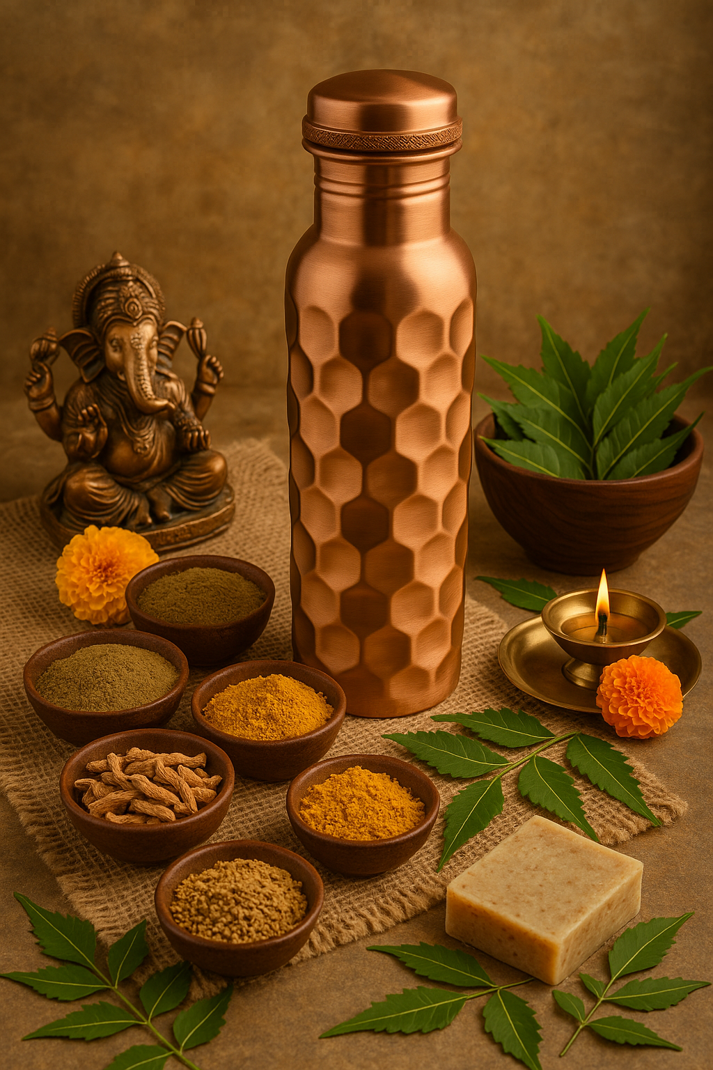 Dein ayurvedischer Begleiter den ganzen Tag, handgefertigte Kupfer-Trinkflasche (950 ml) für deinen gesunden Lebensstil. Trink ayurvedisches basisches Wasser, frei von Plastik und Schadstoffen – ideal für unterwegs, Sport, Büro und Yoga. Natürlich, nachhaltig, einzigartig im Design!