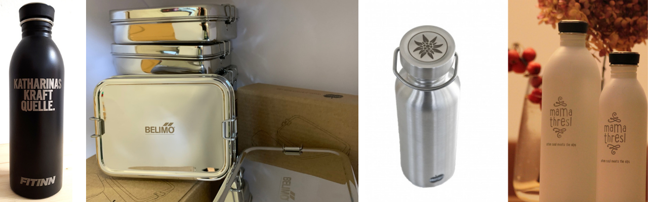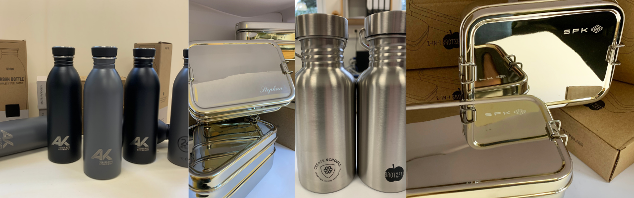 Gebrandete nachhaltige Produkte – Ihr Logo auf unseren Edelstahl-Lunchboxen und Trinkflaschen